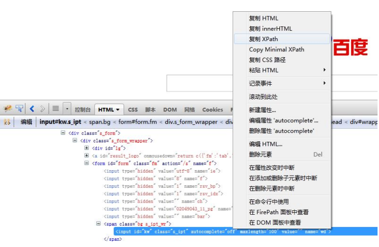 我们用定位百度首页的搜索输入框这个元素定位来演示。