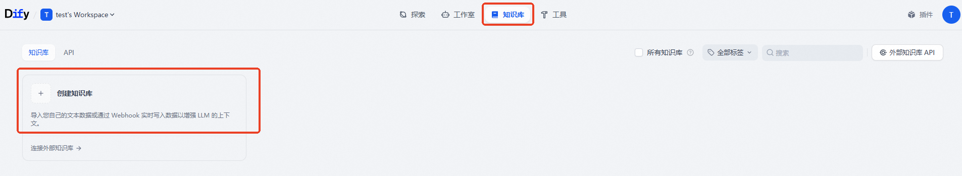 单击上方知识库按钮,点击创建知识库。