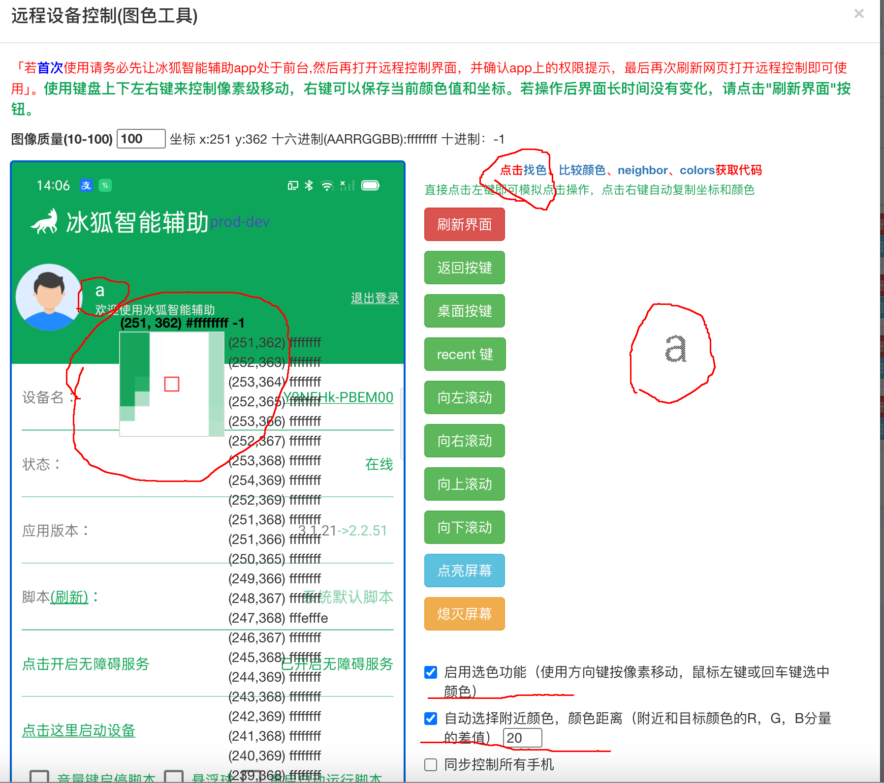 若我们所有的手机都是同一个型号(有相同的分辨率)。某些情况下,根据实际应用场景,用冰狐的图色工具找到目标点坐标,然后直接点击固定的区域。