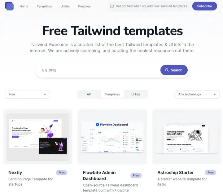 独立开发者大部分使用一些技术栈是 Next.js、Nuxt.js、TS、tailwindcss、tRPC**、**ORM(或原生 SQL)等等。设计方面的话,由于大部分独立开发者都在使用 tailwindcss,我给大家推荐一个模板站(Tailwind Awesome),帮助你快速构建项目。
