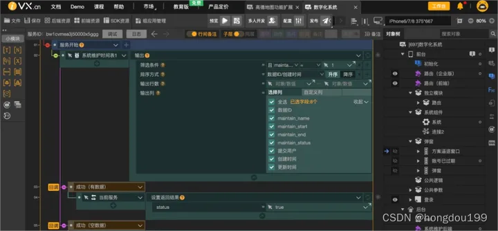 在非代码逻辑表达设计上,iVX 采用简洁的面板,“万物皆对象,逻辑皆面板”,操作起来点击次数很少,操作便捷;