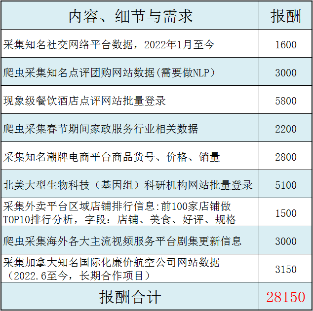 可能近90%以上的提问者,都在面临这两种困境。其实就目前来说,需求大、报酬高、合作稳定的Python私活项目,大多都是网络爬虫类的。通常一个1小时内能完成爬虫项目,其报酬不会少于2K。