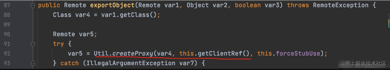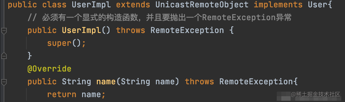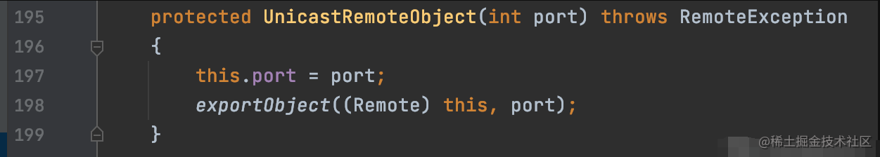 当代码执行到13行时,因为UserImpl继承了UnicastRemoteObject类并且在构造方法里调用了父类构造方法,所以将会执行UnicastRemoteObject类中的构造方法