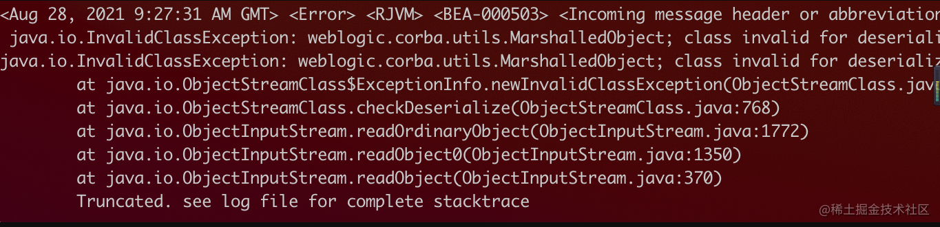 第一时间拿到补丁后,使用之前的CVE-2016-3510 payload打了下没有反应,并且从log中发现如下报错