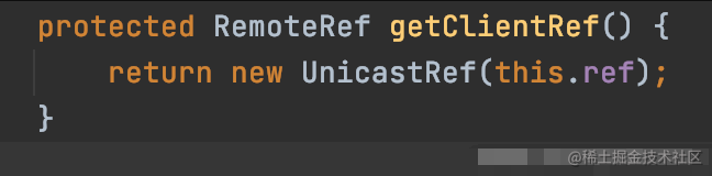 方便理解倒着分析,在最后利用RemoteObjectInvocationHandler代理了我们需要执行的类,那么RemoteRef是如何而来的,从当前代码中只能看见时getClientRef获取到的