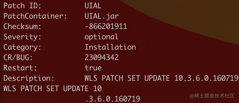 ./bsu.sh -install -patch_download_dir=/weblogic/oracle/middleware/utils/bsu/cache_dir/ -patchlist=UIAL -prod_dir=/weblogic/oracle/middleware/wlserver