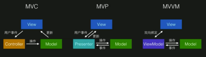 这些模式是依次进化而形成MVC—>MVP—>MVVM。在以前传统的开发模式当中即MVC模式,前端人员只负责Model(数据库)、 View(视图)和 Controller /Presenter/ViewModel(控制器) 当中的View(视图)部分,写好页面交由后端创建渲染模板并提供数据,随着MVVM模式的出现前端已经可以自己写业务逻辑以及渲染模板,后端只负责提供数据即可,前端所能做的事情越来越