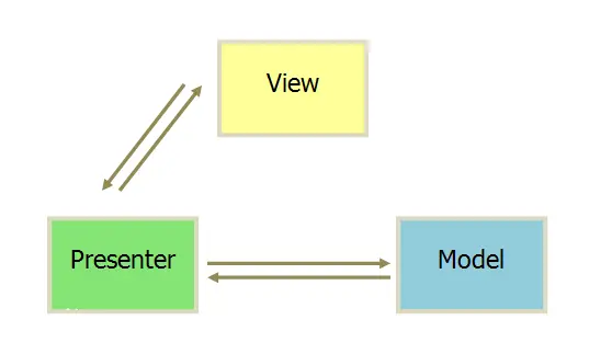 当然 MVP 与 MVC 也有一些显著的区别, MVC 模式中元素之间“混乱”的交互主要体现在允许View 和 Model 直接进行交流,这在MVP 模式中是不允许的。在MVP 中 View 并不直接使用Model, 它们之间的通信是通过Presenter(MVC中的Controller) 来进行的,所有的交互都发生在 Presenter 内部,而在 MVC 中 View 会直接从Model 中读取数据而不是通过Controller。