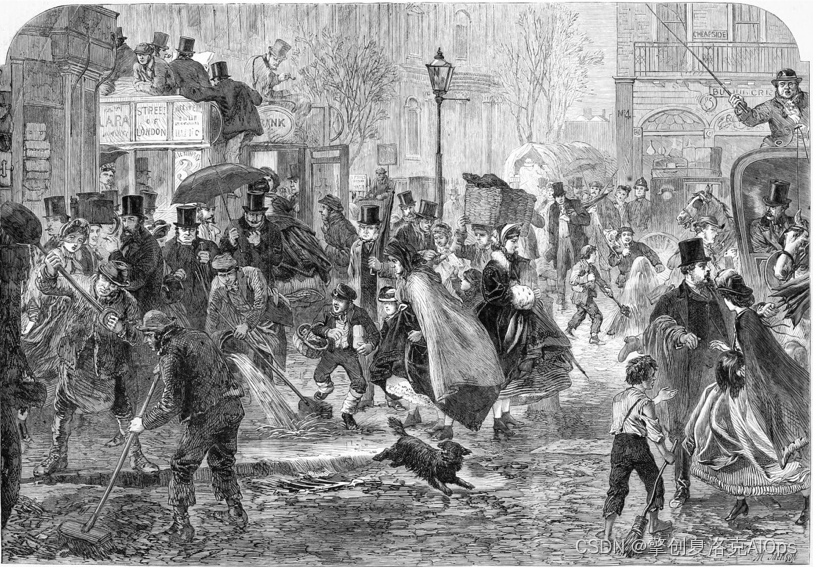 十九世纪中的维多利亚时期,工业革命正在如火如荼地进行,它给伦敦带来了“世界第一大城市”的荣誉称号,以及源源不断的劳动力,但同时,也给城市面貌带来了不可逆的影响。当时的城市没有没有下水道系统,每天的粪便被随意倾倒在大街上。经年累月,伦敦的街道到处都充斥着一股刺鼻的排泄物味道。