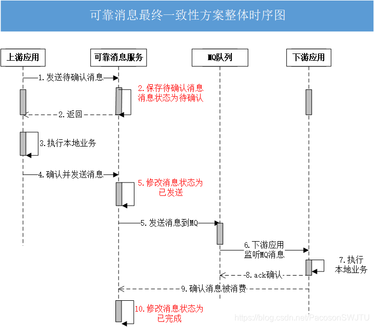 | 第4步 | 下游应用已执行,消息状态为已发送; | 不一致 |
