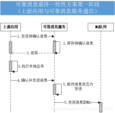 下游应用和可靠消息服务之间的交互图如下: