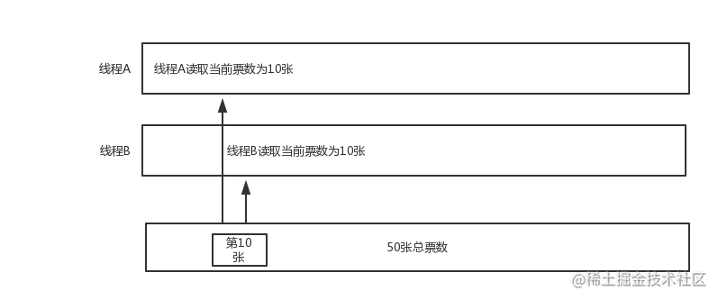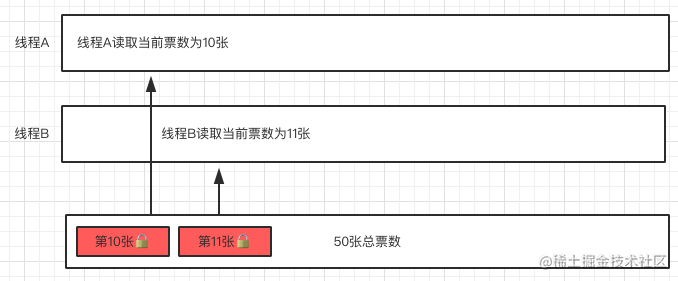 出现线程安全的原因就是在同一个时间,多个线程同时读取一个值,像线程A和B同时读取了当前票数为10,等于是卖了两张票,但是总票数其实就减少了一张。