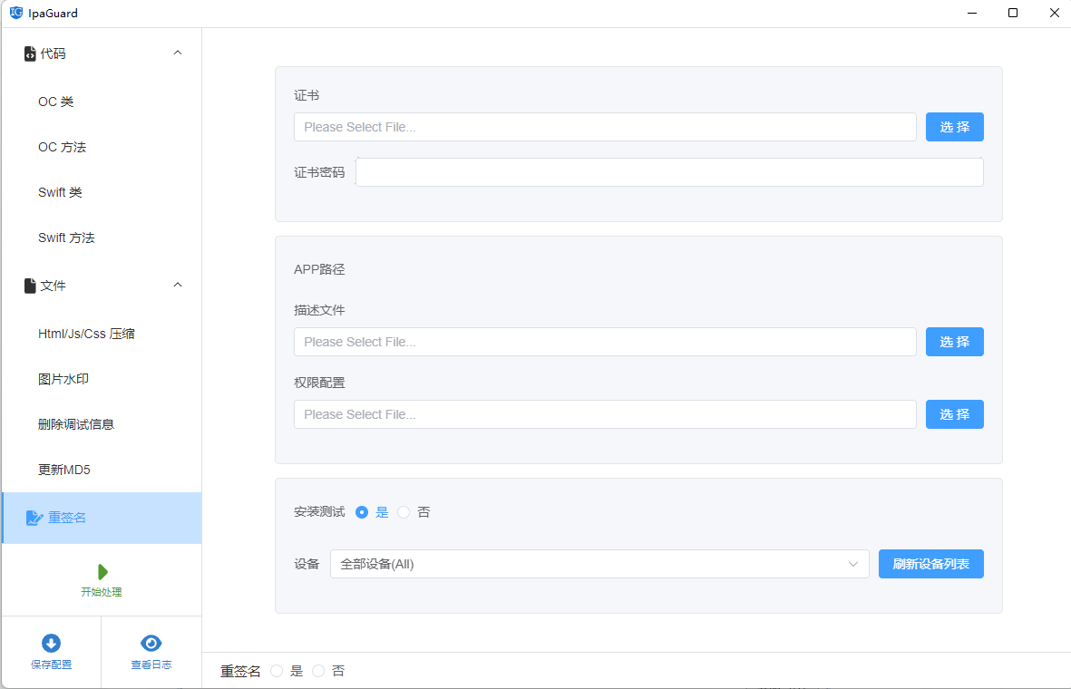 Ipa Guard是一款功能强大的ipa混淆工具,不需要ios app源码,直接对ipa文件进行混淆加密。可对IOS ipa 文件的代码,代码库,资源文件等进行混淆保护。 可以根据设置对函数名、变量名、类名等关键代码进行重命名和混淆处理,降低代码的可读性,增加ipa破解反编译难度。可以对图片,资源,配置等进行修改名称,修改md5。只要是ipa都可以,不限制OC,Swift,Flutter,React Native,H5类app。