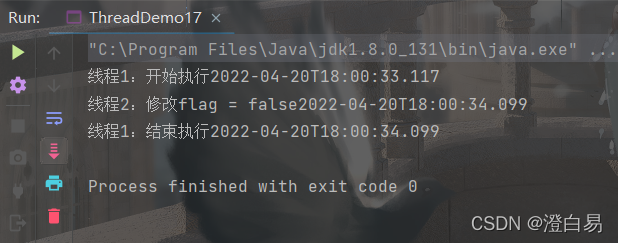 System.out.println("线程1:开始执行" + LocalDateTime.now());