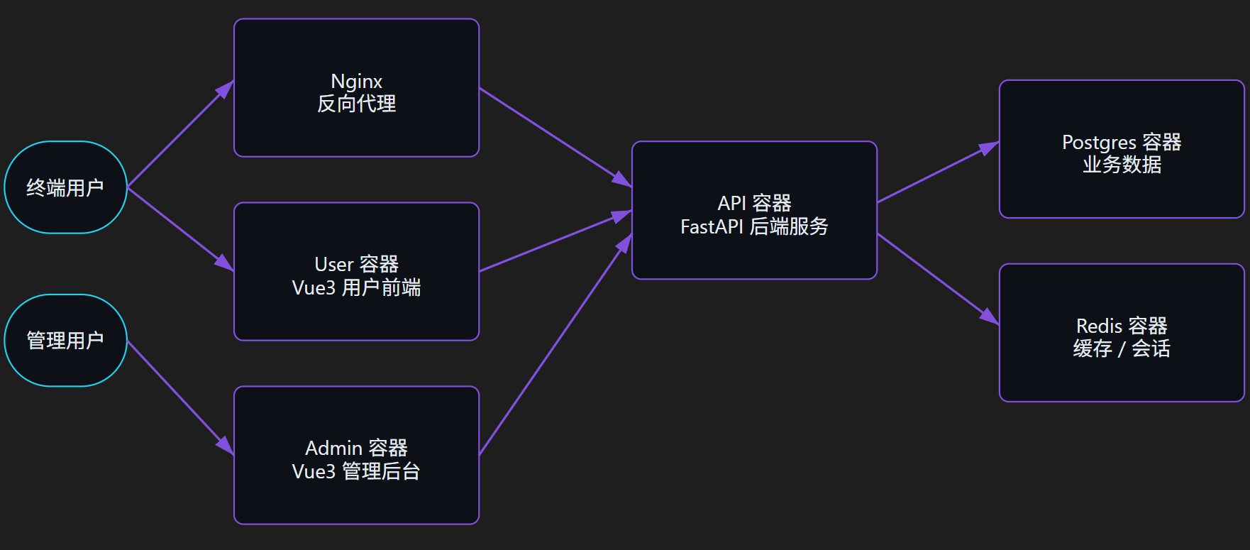 ├── frontend-admin/ # 前端管理后台 (Vue 3)