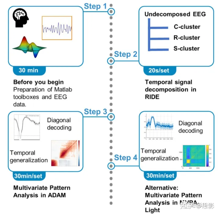 本教程致力于将时间信号分解方法(RIDE,残差迭代分解)与多变量模式分析(MVPA)结合起来,探讨脑电信号中不同信息成分编码表征的时间稳定性问题。本教程展示了如何预处理EEG数据,以及基于MATLAB的RIDE和MVPA工具箱的设置和使用。本文发表在STAR Protocols杂志。写在开始前脑电图(EEG)是认知神经科学中最广泛使用的技术之一,而“表征”是当代认知神经科学的核心。脑电信号实际上是