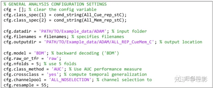 MVPA-Light需要通过指定一组参数来实现1-level(单被试)分析。这些参数决定了预处理步骤、分类算法和预期结果指标。所有参数都将分配给结构变量‘cfg’。
