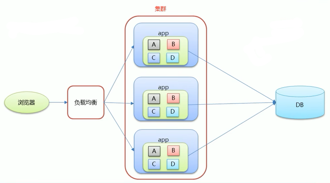 - 一个业务模块, 部署再多台服务器上, 本质是资源堆砌