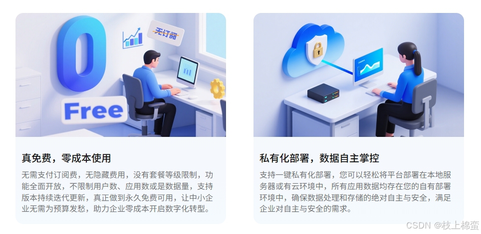 私有化部署免费:支持本地服务器或私有云部署,满足金融、政务等高安全需求场景,数据完全自主掌控。