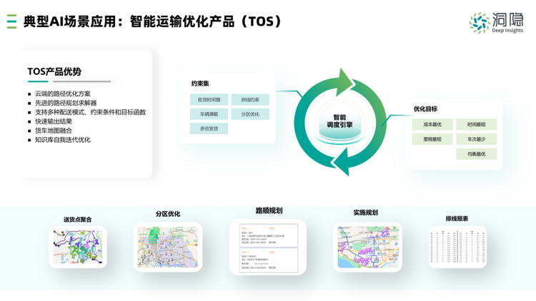 智能运输优化主要应用于物流运输配送场景,由洞隐AI联合实验室自主研发,帮助企业在物流配送应用场景中优化运输路径、车辆调度和装载,减少运输时间、降低运输成本、践行绿色低碳的物流理念。同时,该产品已经过众多洞隐合作客户实践落地,并进行了多轮迭代升级,目前已达到3.0版本。