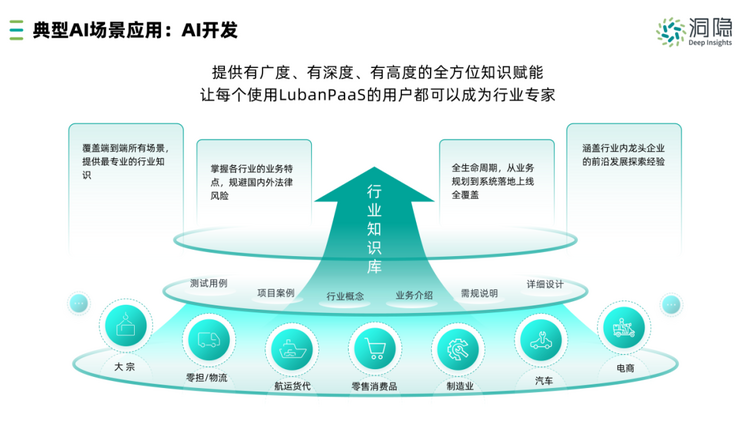 因此在物流供应链领域,洞隐科技基于大模型能力与垂直行业20余年的业务沉淀,经过打磨迭代发布了DI.AI供应链智能产品,包括“智能运输优化、智能订舱、智能关务、智能助手及AI开发”这5大供应链关键应用场景,来优化业务流程,提升运营效率,确保合规性,并推动行业创新。