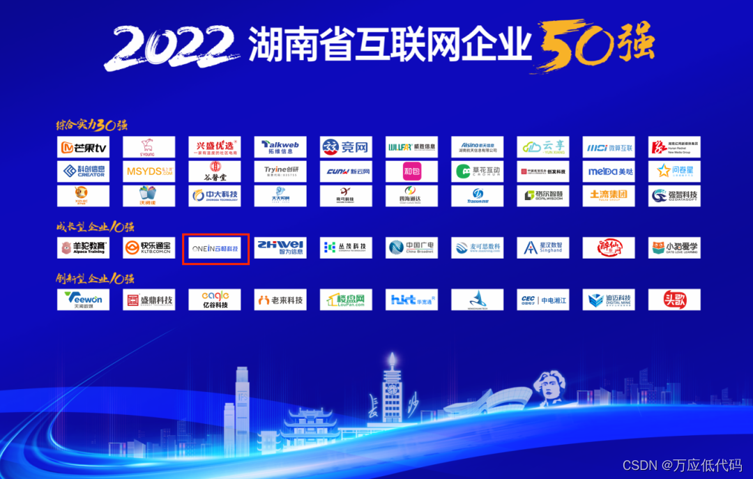 湖南云畅网络科技有限公司(万应低代码)凭借卓越的软件技术能力和领先的行业影响力,连续两年入榜「湖南省互联网成长型企业10强」。