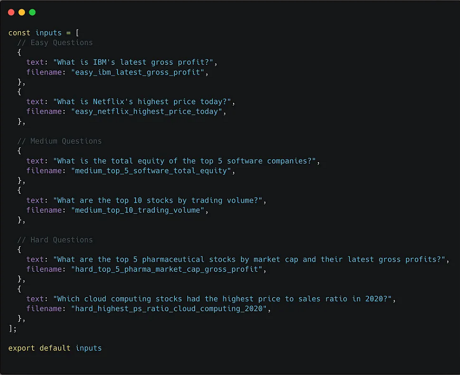 我的方法相对简单。我收集了 60 个问题的列表并检索了这些问题的答案。我将使用以下目录结构将问题/答案对保存到我的计算机上: