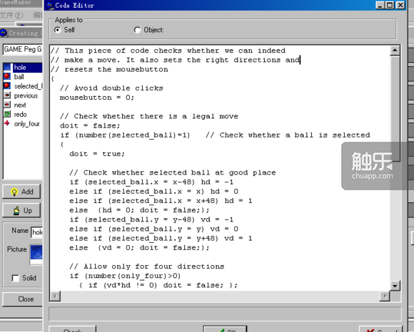 “写一款电脑游戏实在需要做太多工作和技巧了,如果能有个简便方法岂不妙哉?Game Maker就是为此而生的。”奥维马斯在Game Maker 1.1版的安装协议里留下了这些心声。这不是句空话,尽管这是一款近20年前的软件版本,我们仍能从Game Maker 1.1版简陋的UI中窥得它今天的雏形,比如拖拽式的按钮和简陋到极致的Game Maker Language(简称GML)编码器,它们是Game Maker的核心竞争力。