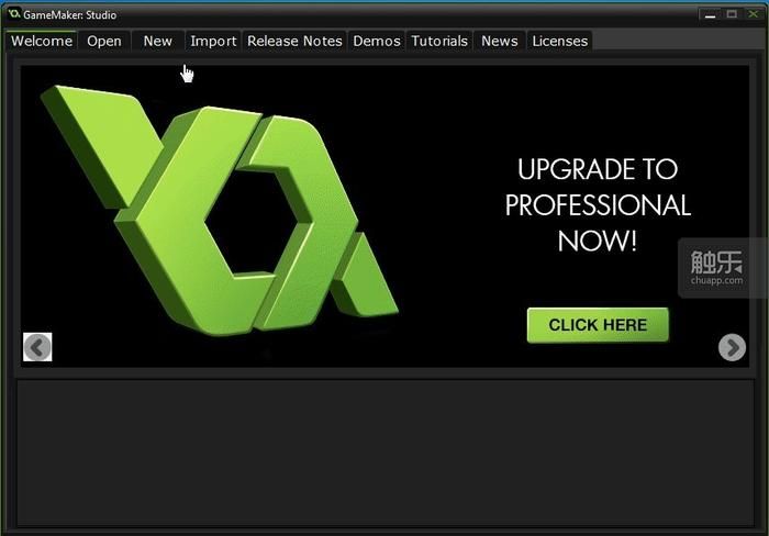 在这个版本中,还包括无法输入数字的room编辑器及只有调节音量功能的声音编辑器,它们共同组成了最初的Game Maker。到这里,Game Maker 1.1版有一个严重的问题——它无法把做好的游戏以应用程序形式导出。如果制作者想要和别人分享游戏,只能把工程文件整个打包发送,对方则需使用一个名为Game Runner的软件运行工程文件。