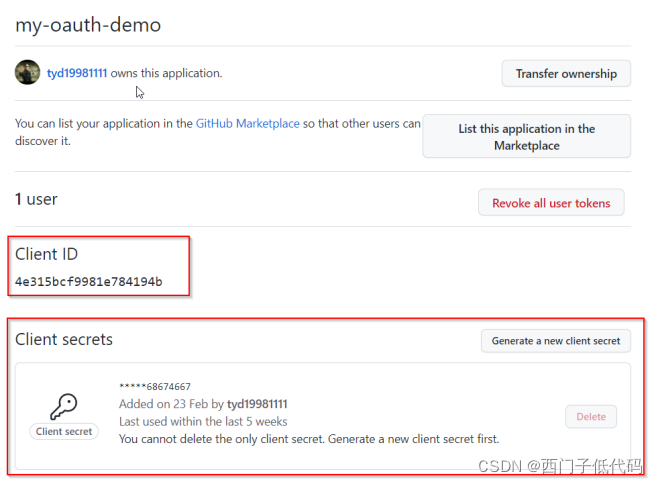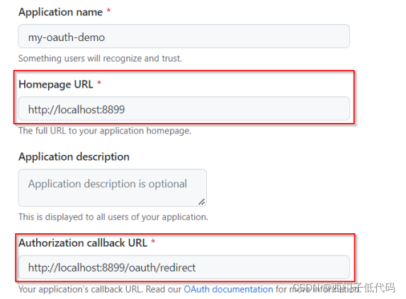 Homepage URL设置应用主页的IP和端口;Authorization callback URL是应用的回调地址。