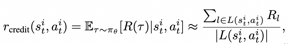 如图1所示,C-3PO不是为每个问题探索单个轨迹而是通过树状结构的探索创建一个包含多个轨迹的决策树。这种树结构使C-3PO能够追踪单个决策如何影响系统级结果。对于每个代理生成的节点 ,C-3PO基于系统级奖励以期望的形式计算每个智能体的奖励: