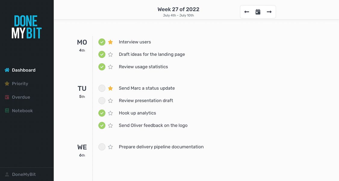 7. DoneMyBit - 一个待办事项的网站应用,很简洁。没其他特点。