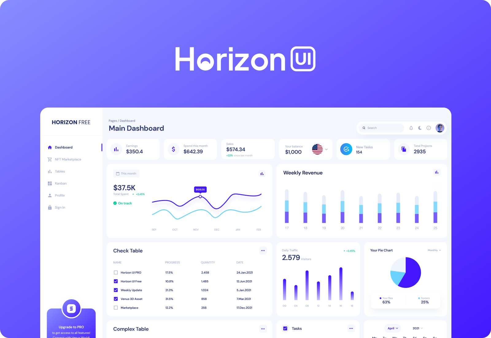 3. Horizon-UI - React开源后台管理模板,开源的,设计非常好看,在这里看预览。