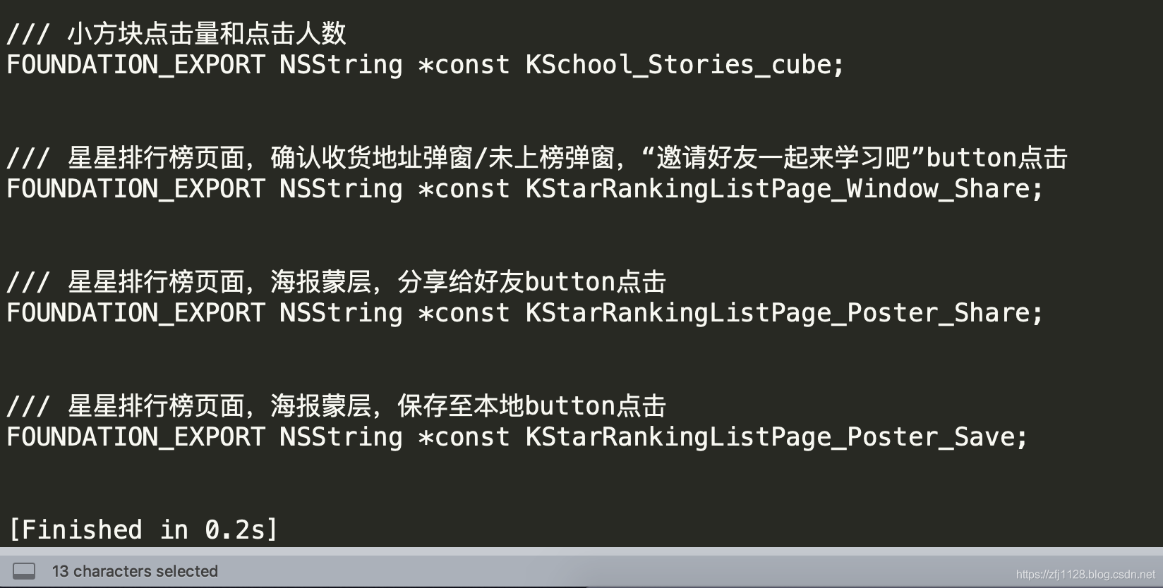 pro_str += 'NSString *const K'+ event_name +' = @"'+ event_name +'";'