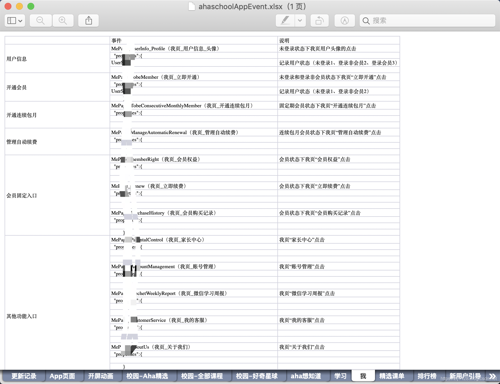 其中ASLogsEventName类是存放约定好的事件字段的,但是APP中有四百个事件上报的点,要是一个一个手写上去,估计手要残了,事件Excel列表如下图: