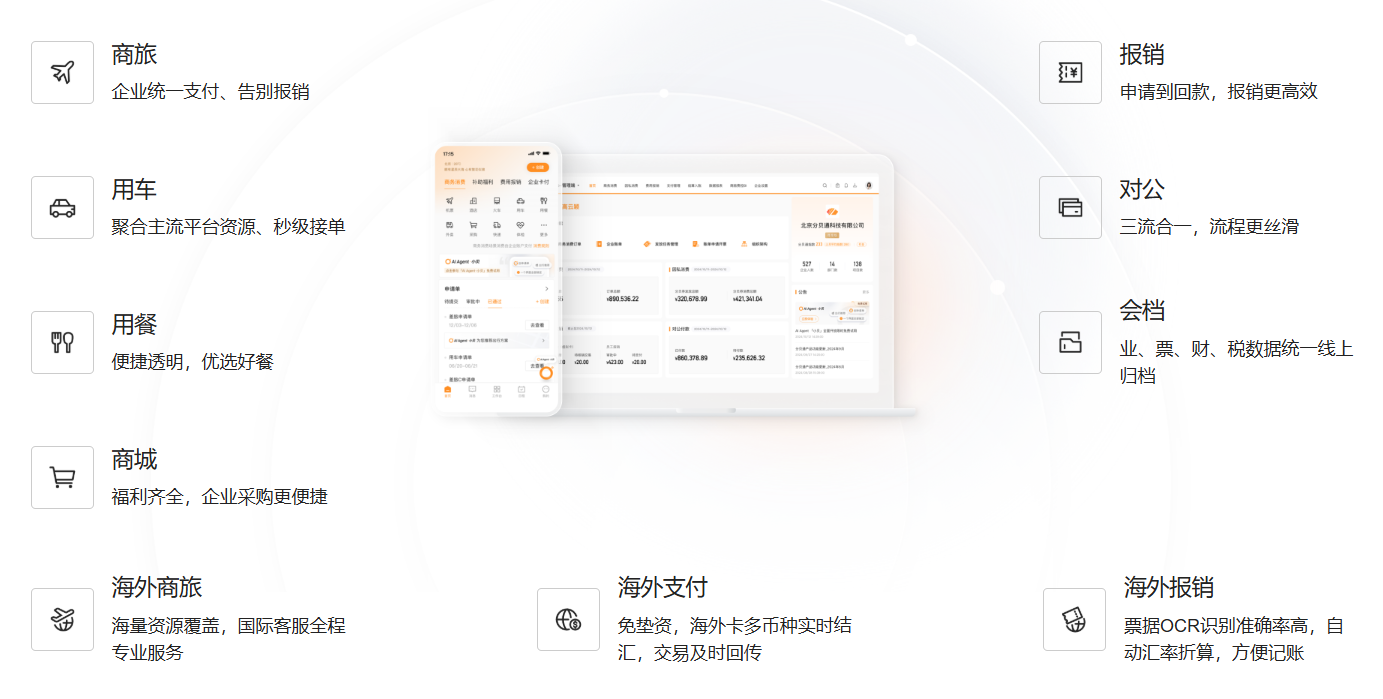 - 移动化报销体验:无纸化报销流程,商旅生态集成,提升员工报销体验。