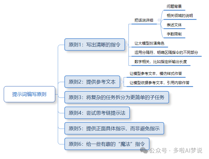 那如何才能写出高质量的提示词?这里我总结了以下几大原则、技巧。