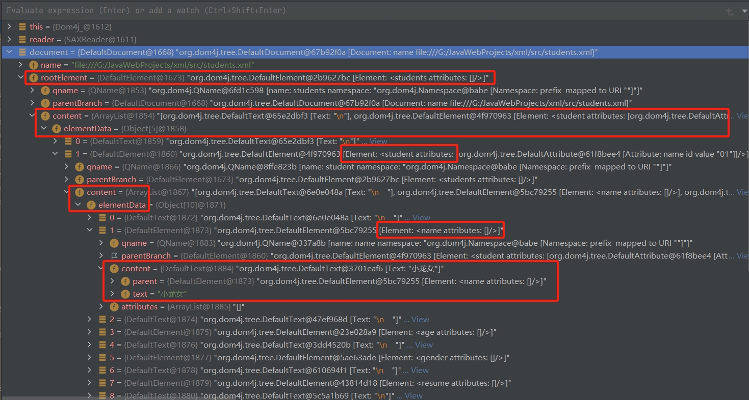 List<Element> students = document.getRootElement().elements("student");