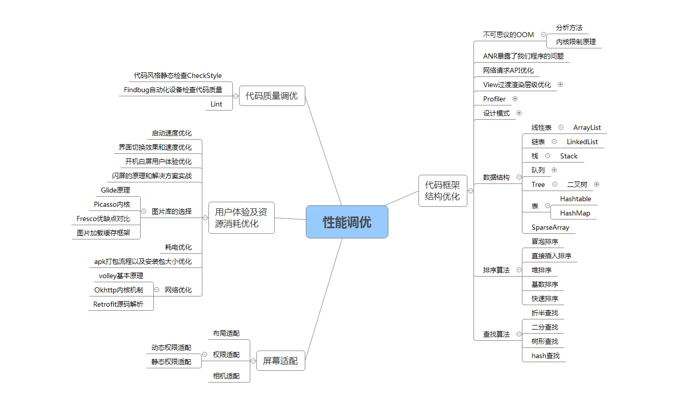 我搜集整理过这几年阿里,以及腾讯,字节跳动,华为,小米等公司的面试题,把面试的要求和技术点梳理成一份大而全的“ Android架构师”面试 Xmind(实际上比预期多花了不少精力),包含知识脉络 + 分支细节。
