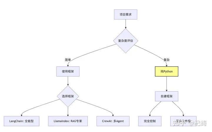 框架选择没有对错,只有适合。对于标准化程度高的项目,框架能节省大量时间。但对于需要深度定制的生产级Agent,纯Python可能是更好的选择。建议先用框架快速验证概念,再根据实际需求决定是否需要自建。