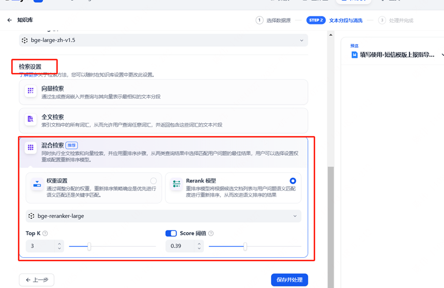 (1)向量检索是对语义的检索,更适合非结构化数据,在处理非语义内容(如编号)时效果不佳,如Excel中包含大量非语义的字段,单纯依赖向量检索可能无法准确匹配,需要选择混合检索;混合搜索可以结合向量检索和关键词检索的优点,实现更快速、更精准、更多样的检索结果。