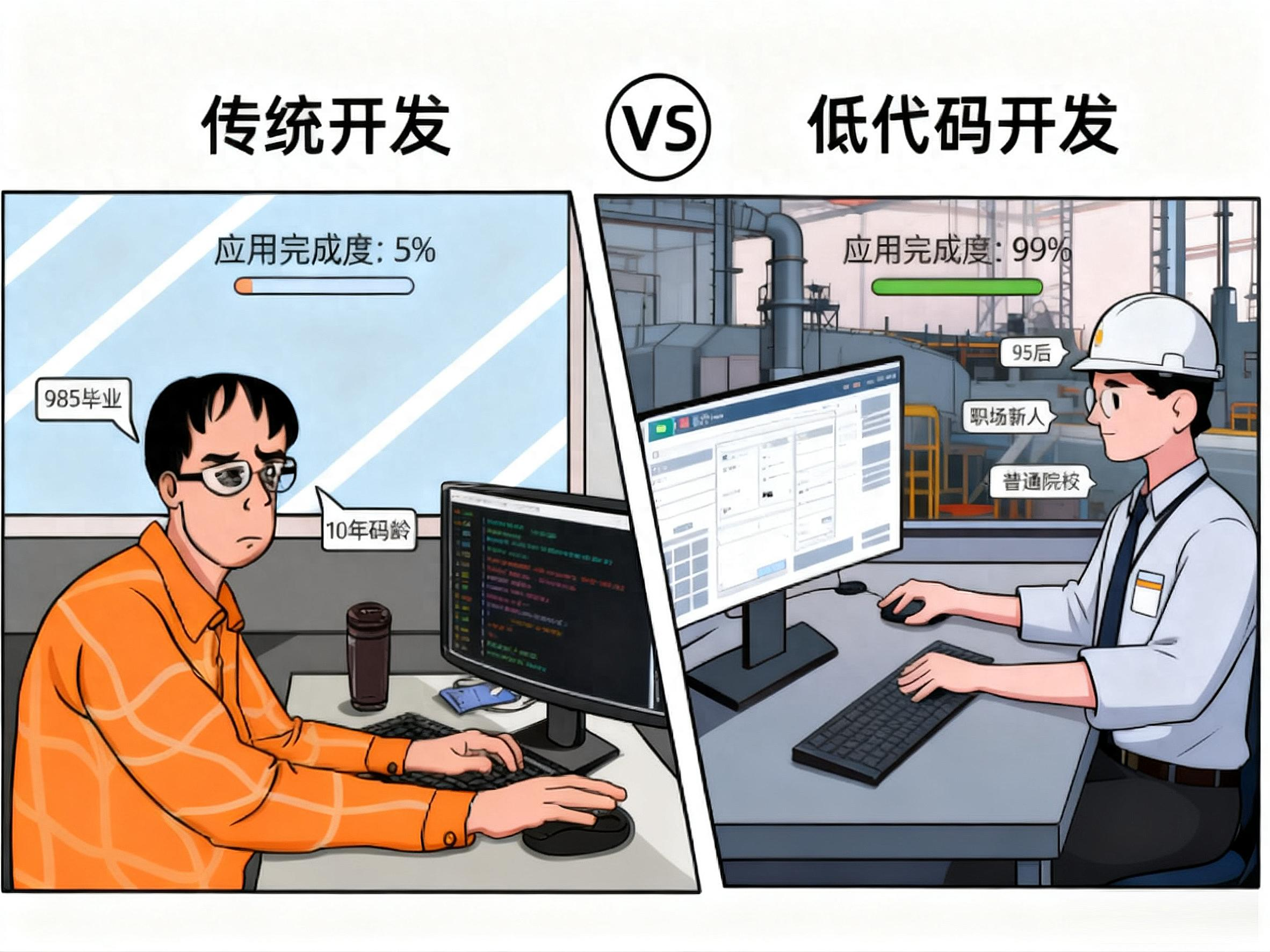 在美国,一家公司上线新业务,用低代码两天就能搭好系统。而在国内,同样的需求得经历:需求会、评审会、开发排期、测试返工——一折腾3个月。