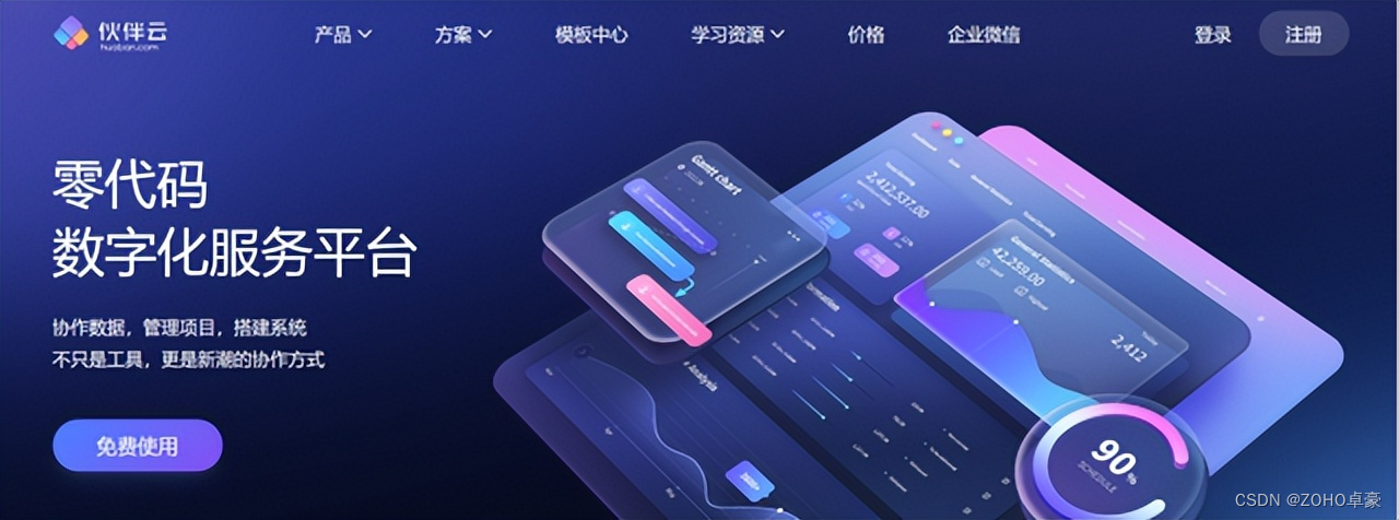伙伴云低代码平台提供的产品和服务包括云表格Pro、项目协作工具以及零代码应用搭建平台,支持从小白到专家、从部门到企业的全面数字化需求。