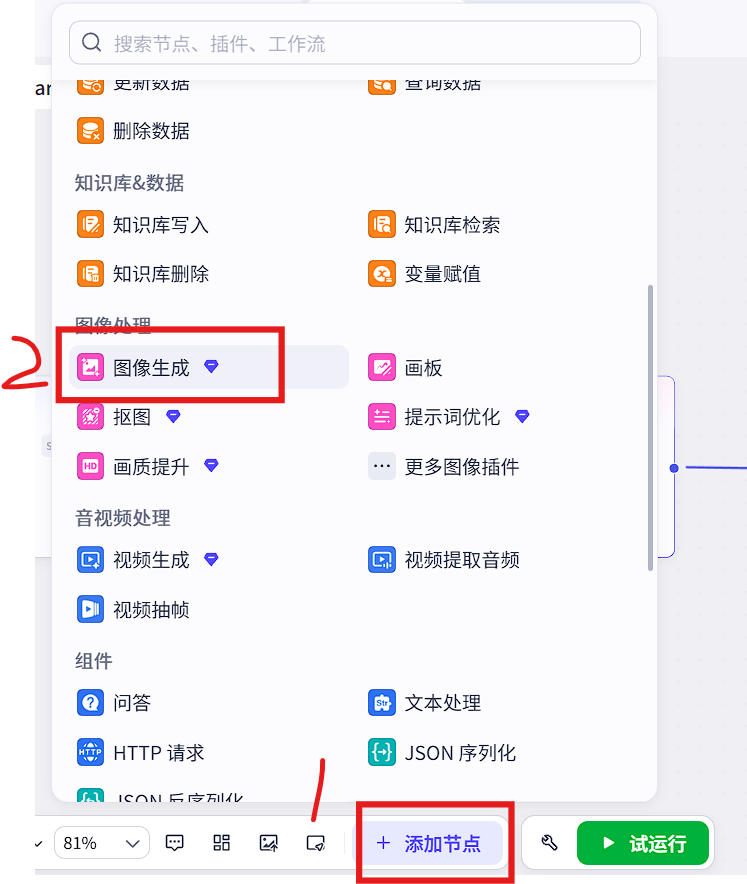然后继续添加节点,选择新增数据,对该节点进行图内配置