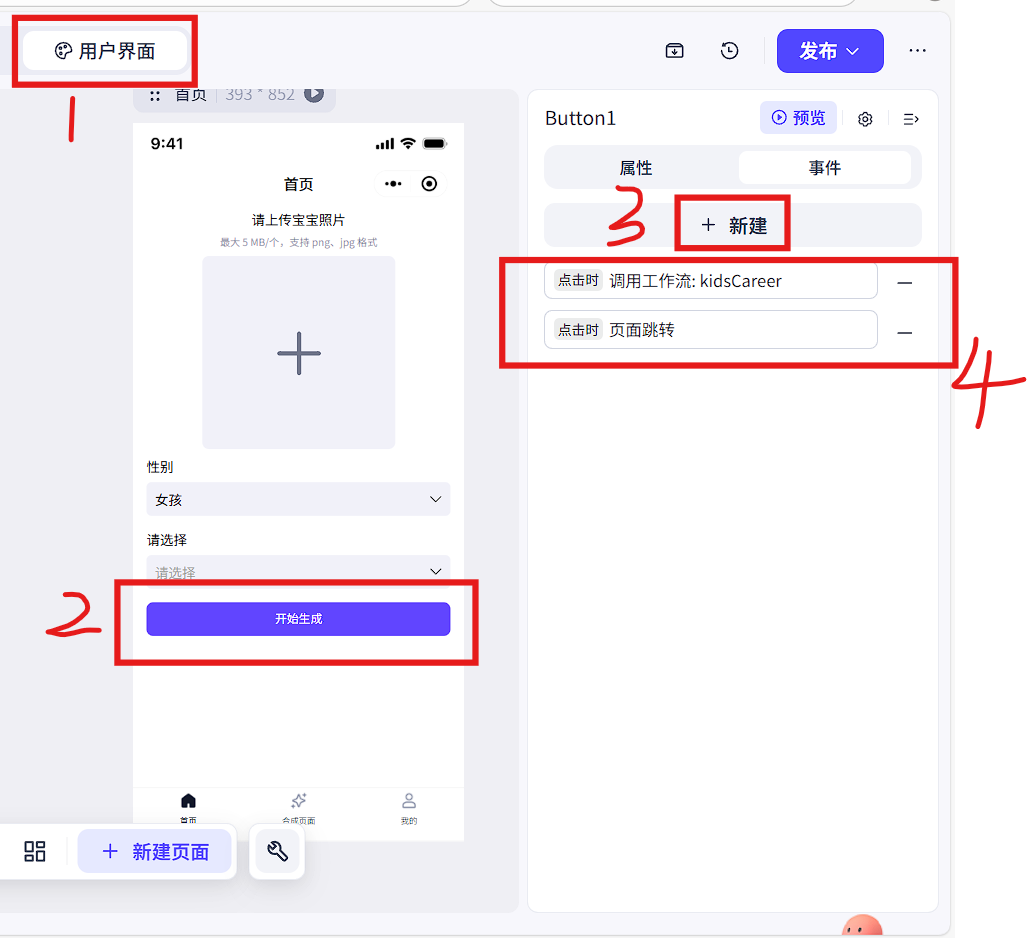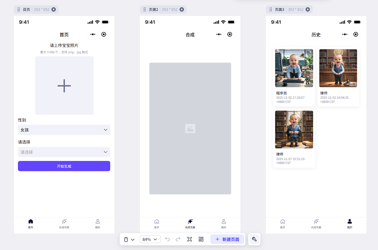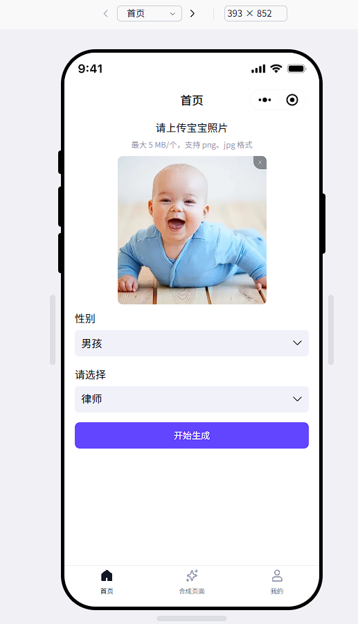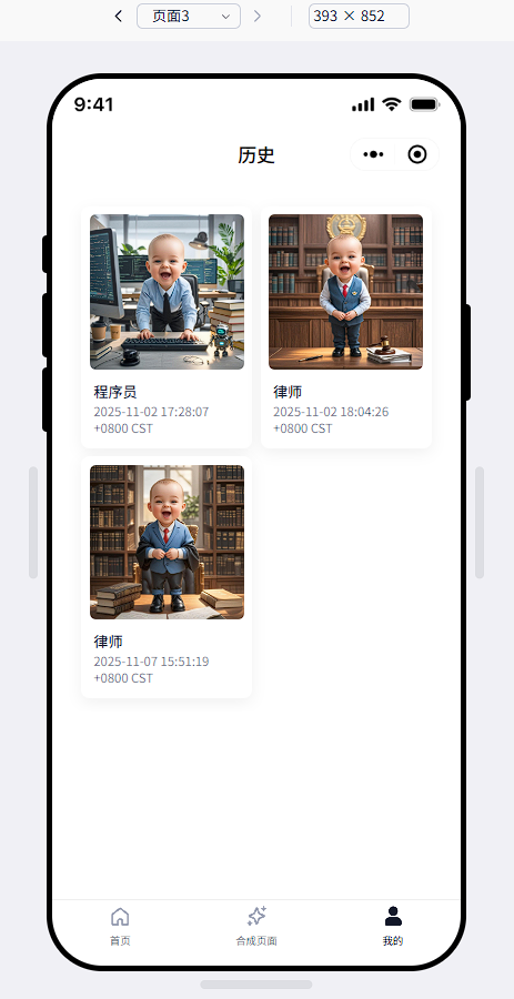 - AI 合成页面:调用 AI 模型生成“宝宝+职业”的创意图像。
