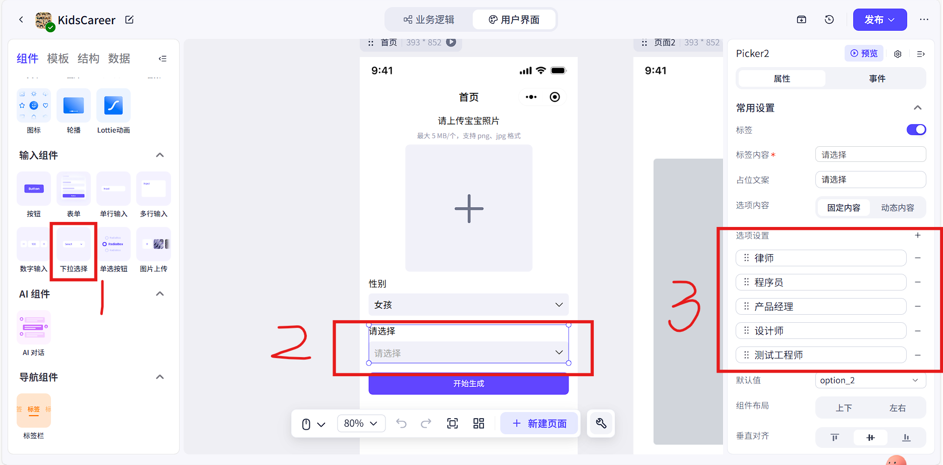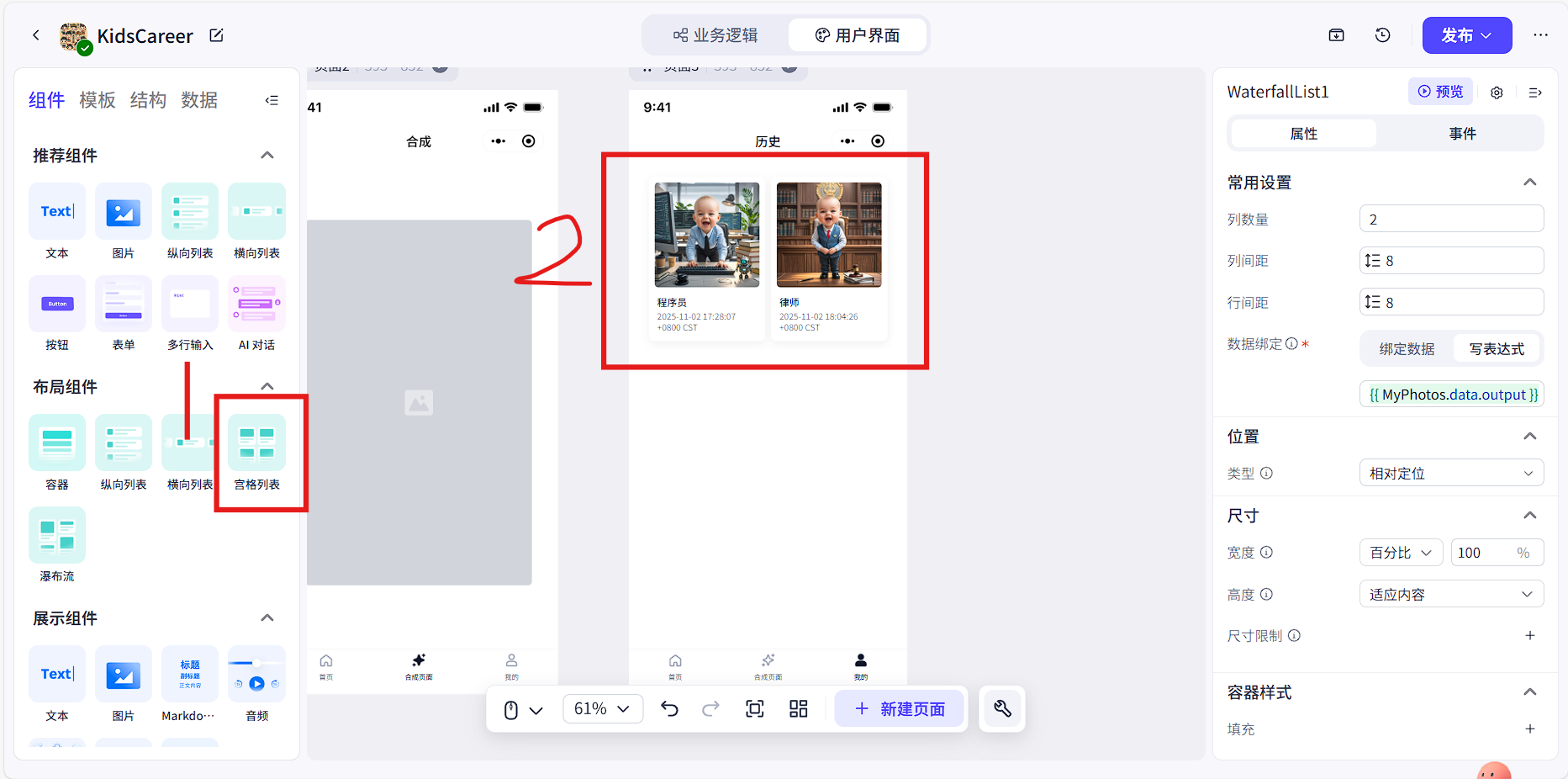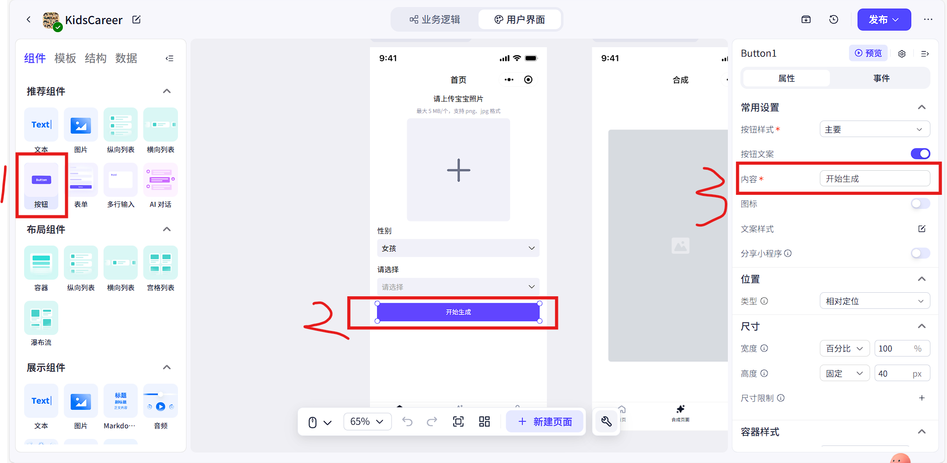 - AI 合成页面:调用 AI 模型生成“宝宝+职业”的创意图像。