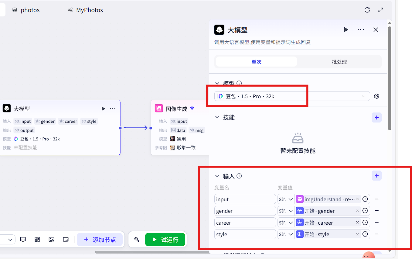 这是整个应用的“大脑”,是整个程序能正常运行传输数据的关键部分。在 Coze 中,你可以通过可视化流程图连接各个动作。