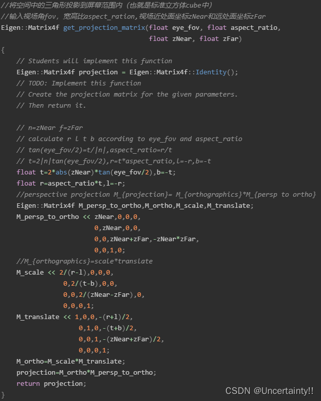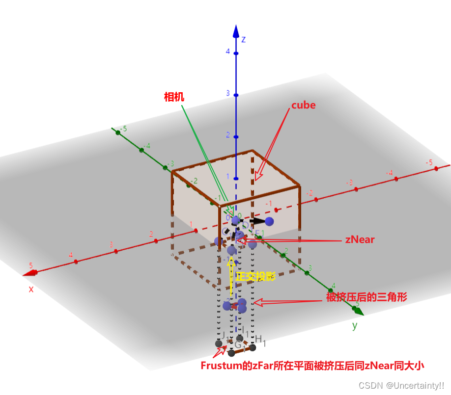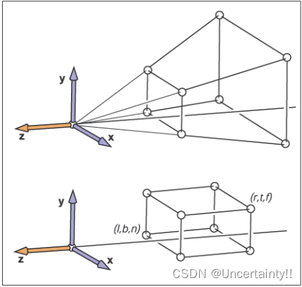 为什么要挤压?因为要进行透视投影,只有挤压后才能体现出近大远小(小就是因为被挤压了)