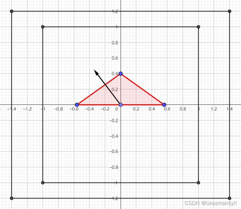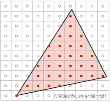利用三角形三边的三个向量叉积来判断像素中心点是否在三角形内,如果在三角形内,则对该像素进行采样(也就是所有屏幕中的像素中,属于图形内部的像素被选中),被采样的像素将进行上色