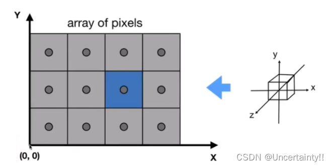将模型投射到像素,投射过程从左到右,从上到下,一行行如窗户栅栏,这种渲染方式叫光栅化渲染